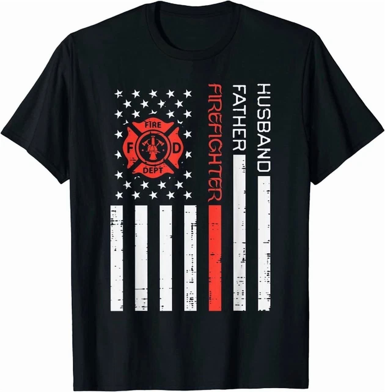 Hot Trending Tee With Husband Father Firefighter Us Flag Red Line Gift