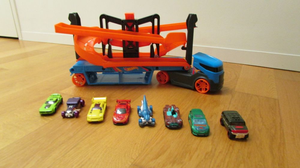 Hot Wheels City Lift and Launch Trailer Laster m 8 Autos (Gebraucht