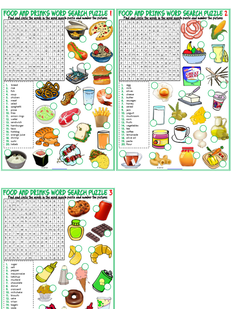Food and Drinks Vocabulary Esl Crossword Puzzle Worksheets For Kids