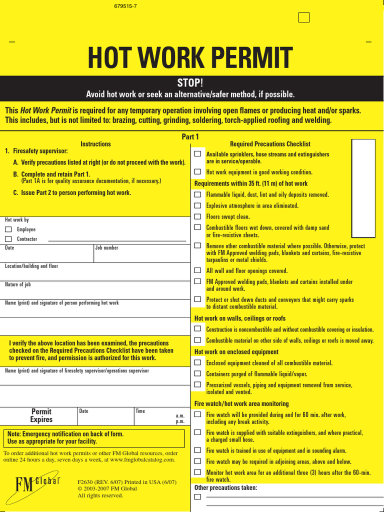 Hot Work Permit Sample Form ≡ Fill Out Printable PDF Forms Online
