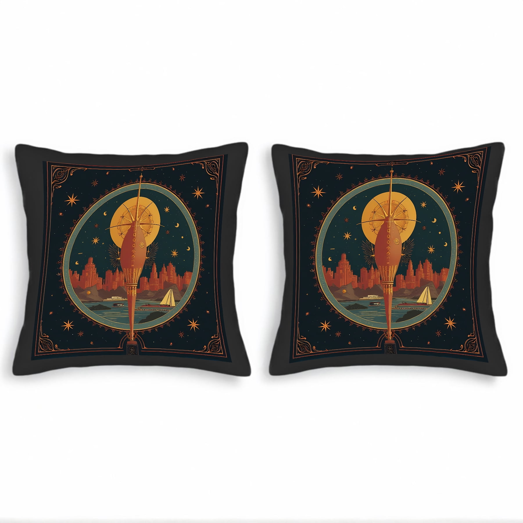 Celestial Hot Air Balloon Throw Pillow Covers Set of 2 18x18in