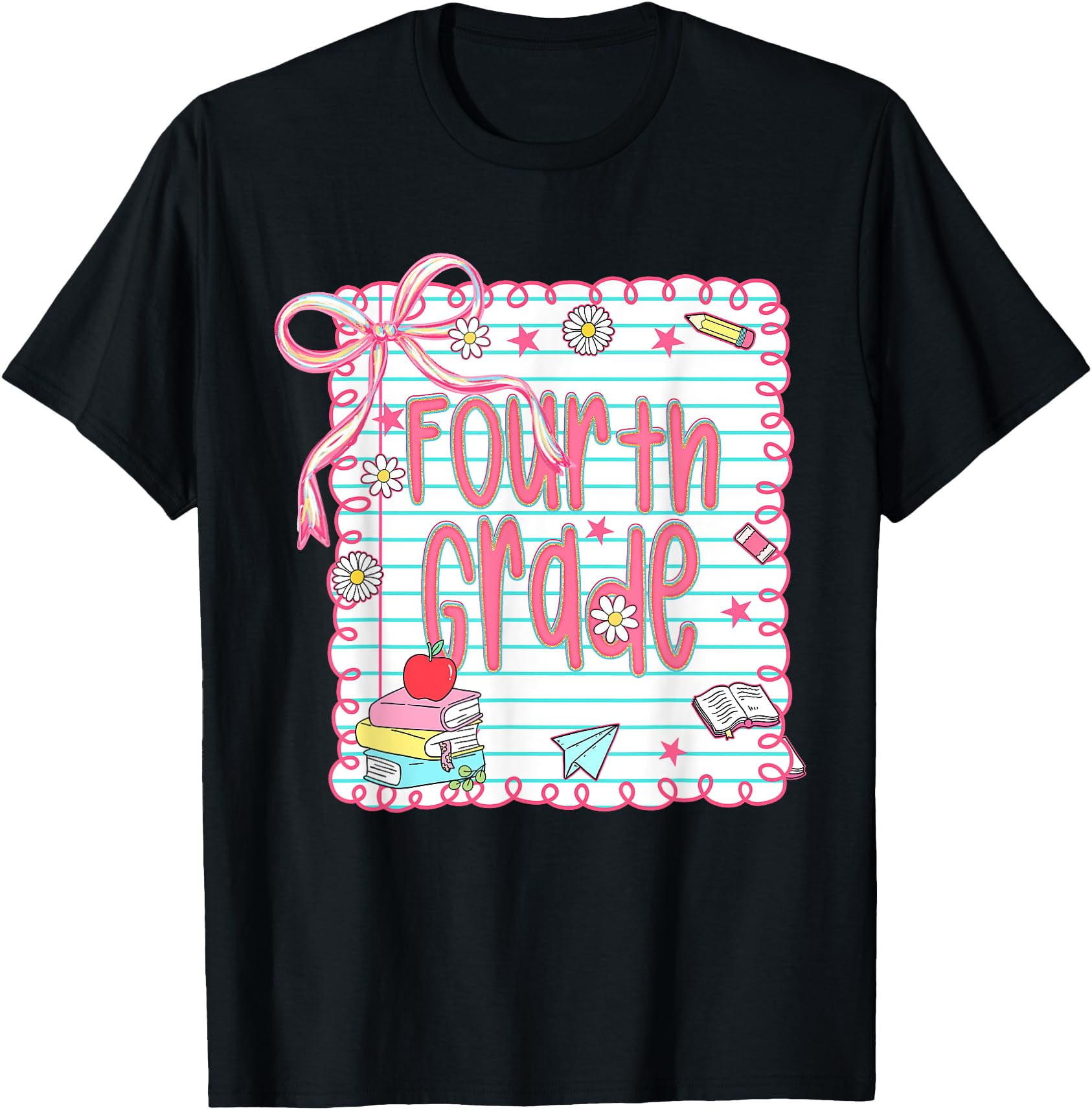 Hot Trending Tee With Girls Fourth Grade Coquette Bow Pink Preppy Back