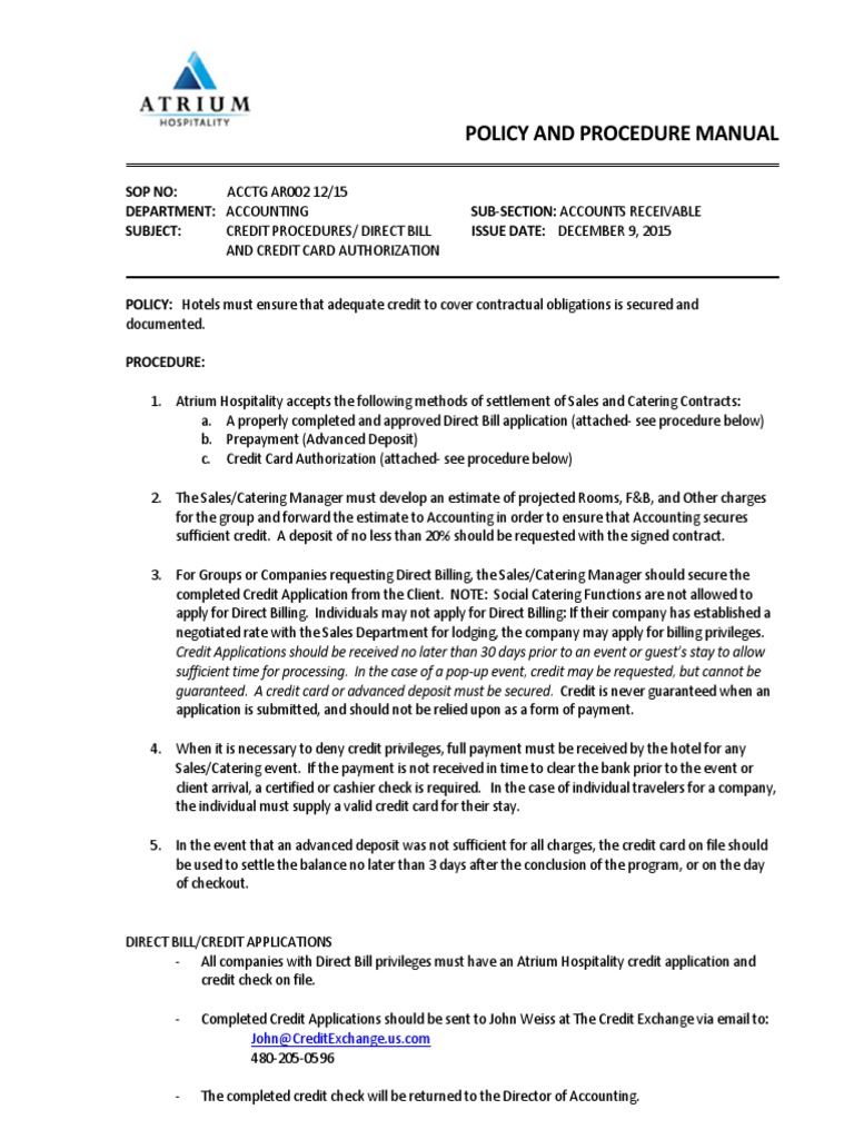 Hotel Direct Bill Application Process PDF Credit Card Payment