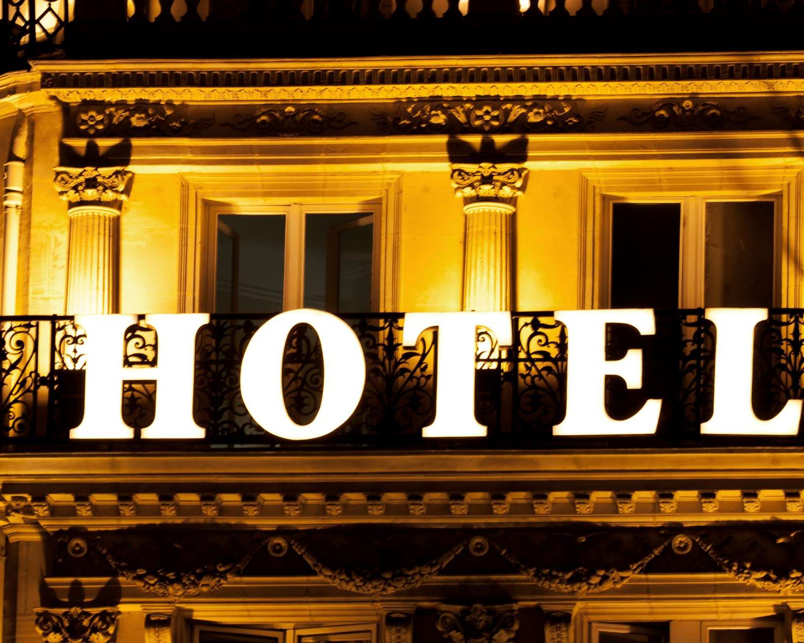 Premium Photo Illuminated hotel sign taken in Paris at night