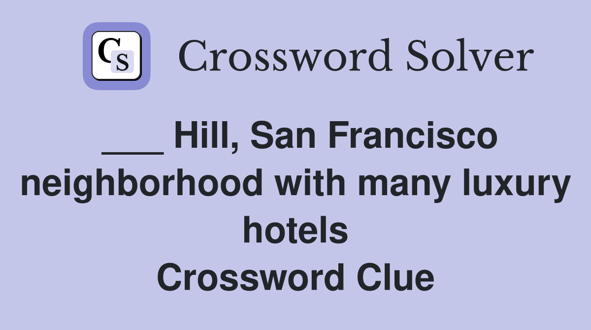 Hill San Francisco neighborhood with many luxury hotels Crossword
