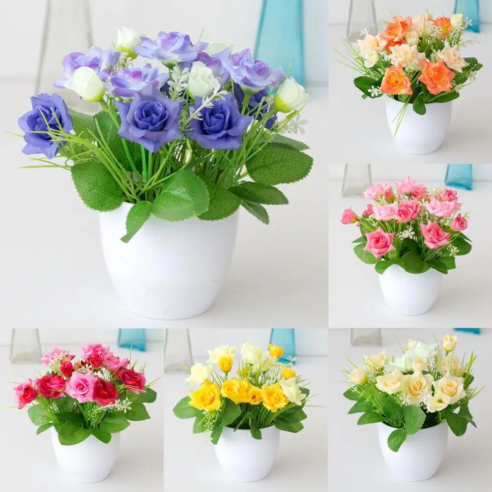 Imitação vaso de flores rosa bonsai decoração do hotel plástico estante
