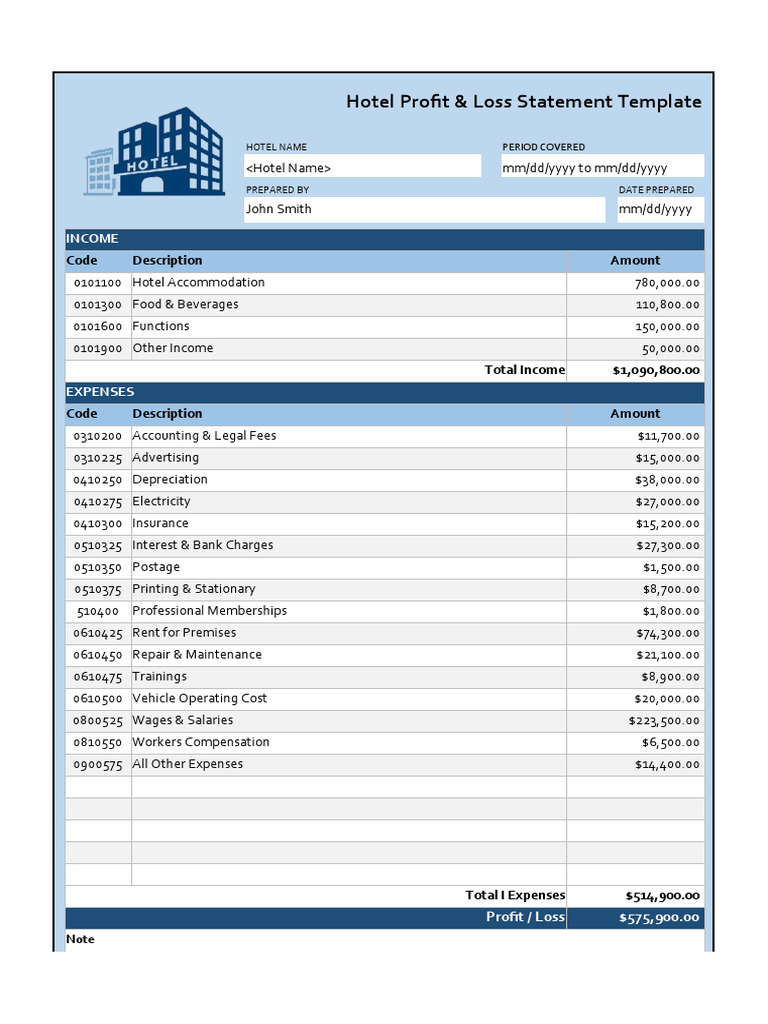 Here are some of the images for Hotel Profit And Loss Statement Template that we found in our website database.