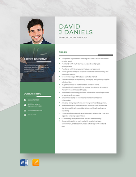 Hotel Resume Template Highlight your skills and area of