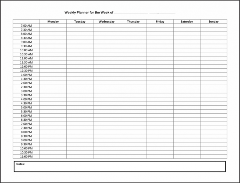 Weekly Hourly Agenda Templates at allbusinesstemplates com