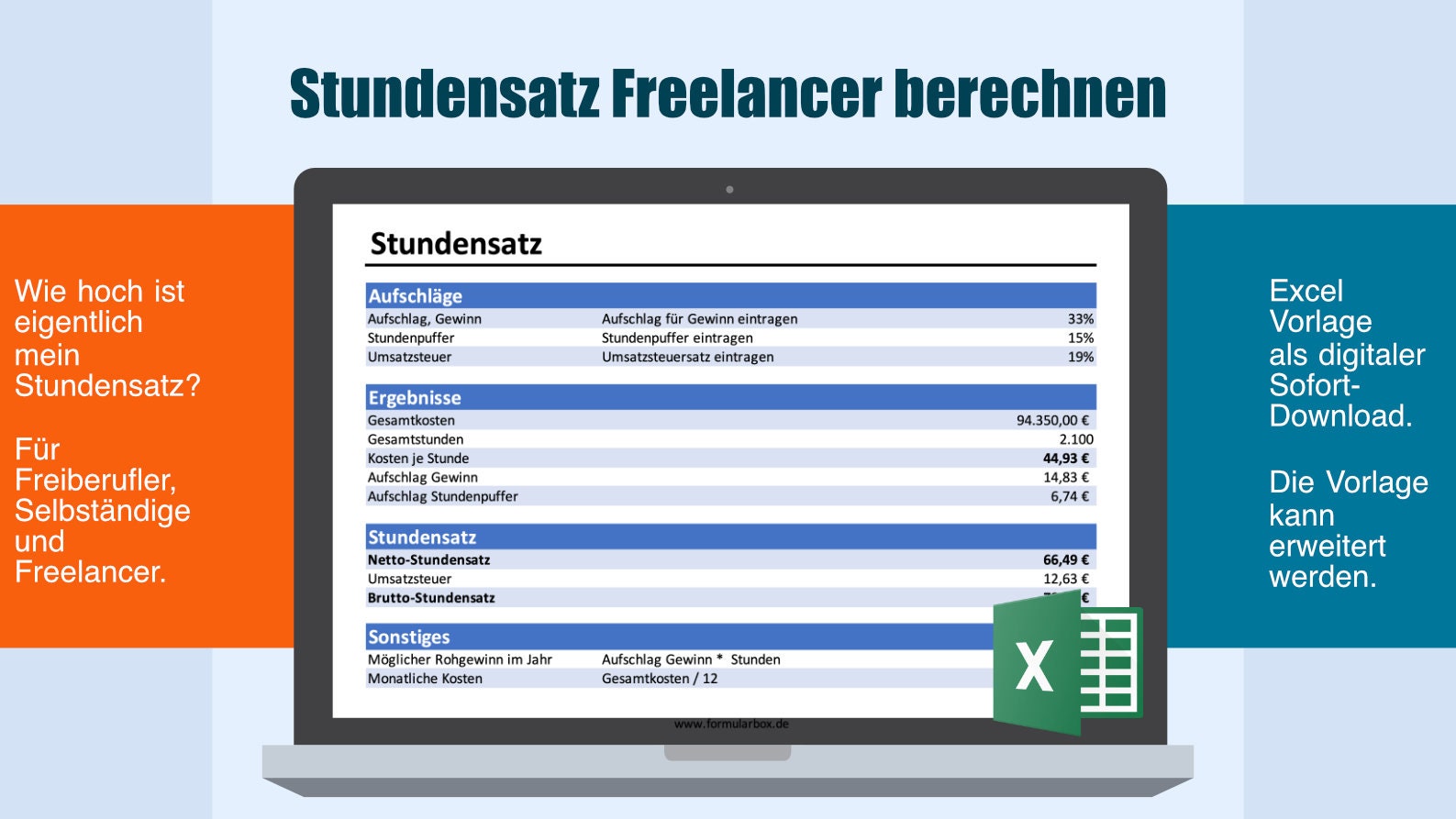 Excel Template: Calculate Hourly Rate Hourly Wages for Freelancers
