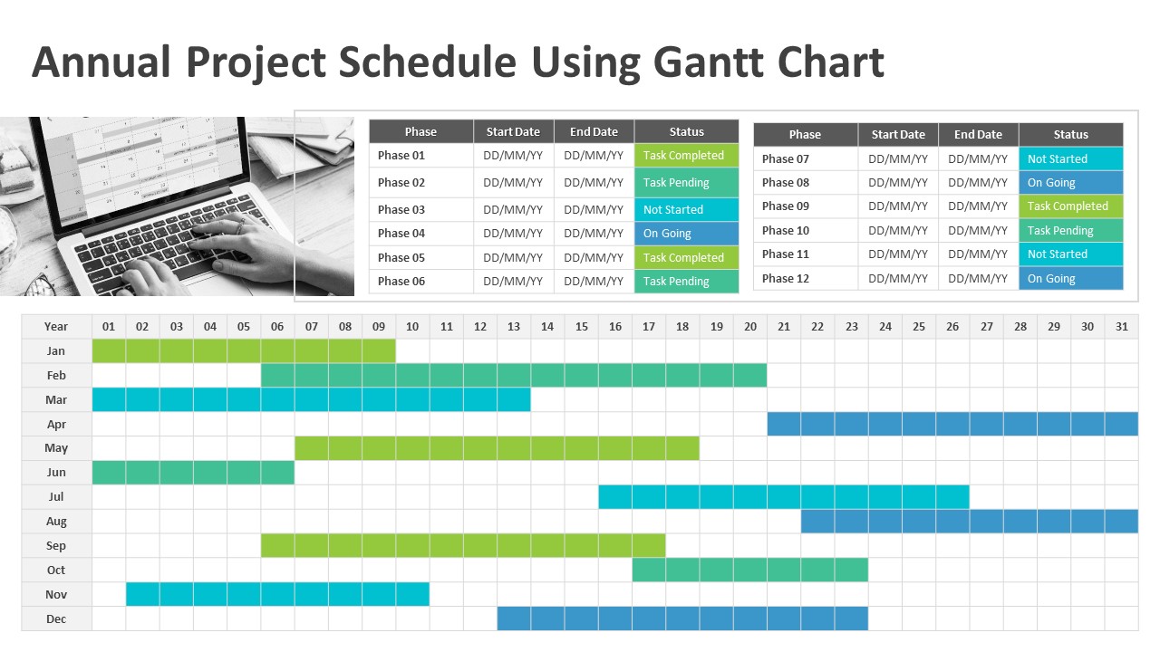 Annual Project Schedule Using Gantt Chart PowerPoint Template