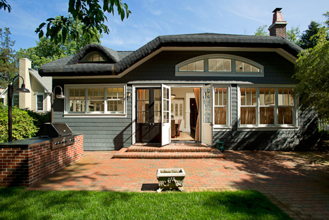 Shingle Style Gambrel House with Wraparound Windows Stock Photo Image