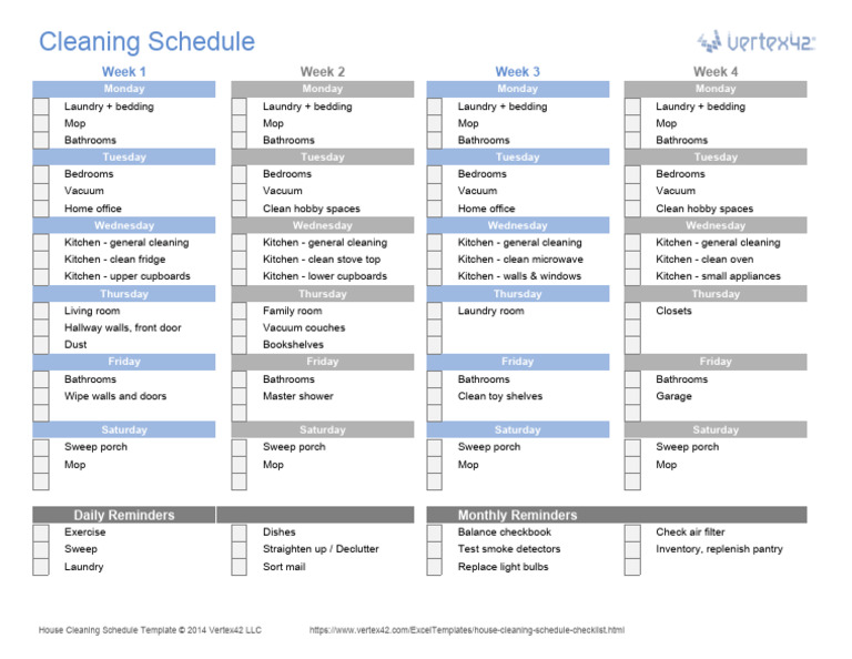 Free Printable House Cleaning Schedule Cleaning Checklist