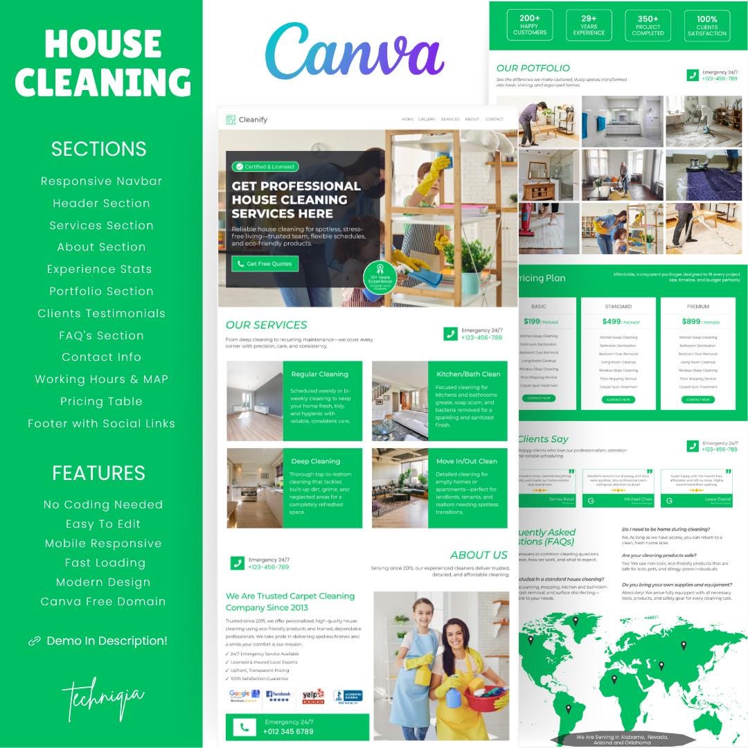 Editable House Cleaning Website Template: Canva Design (PDF Guide
