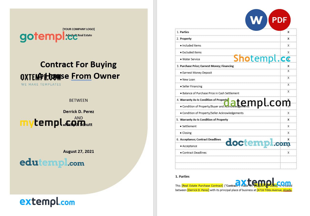 free contract for buying a house from owner template Word and PDF format