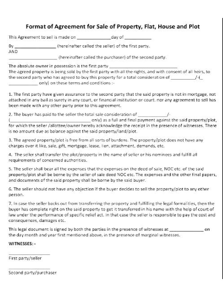 Format of Agreement of Sale of Property Flat House PDF