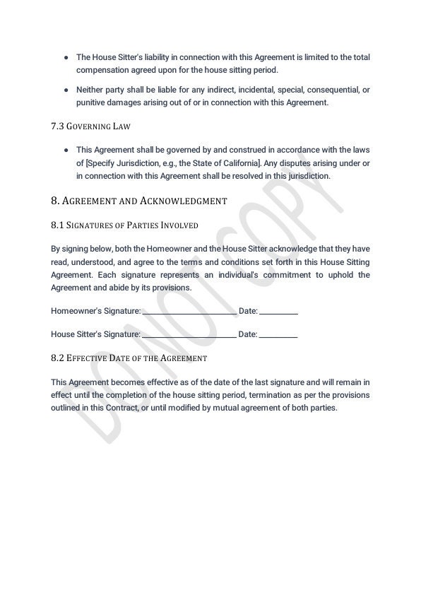 House Sitting Contract Template