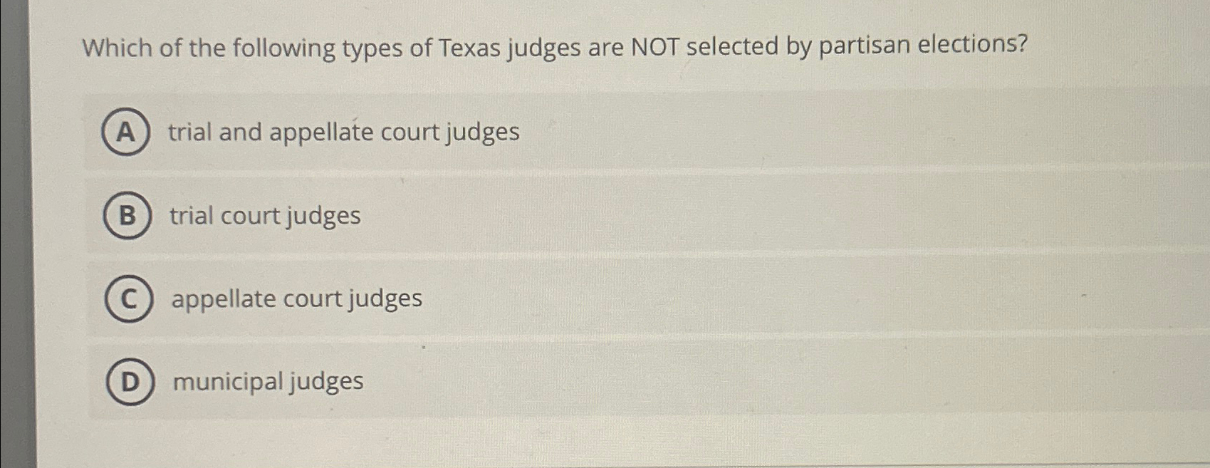 Solved Which of the following types of Texas judges are NOT Chegg com