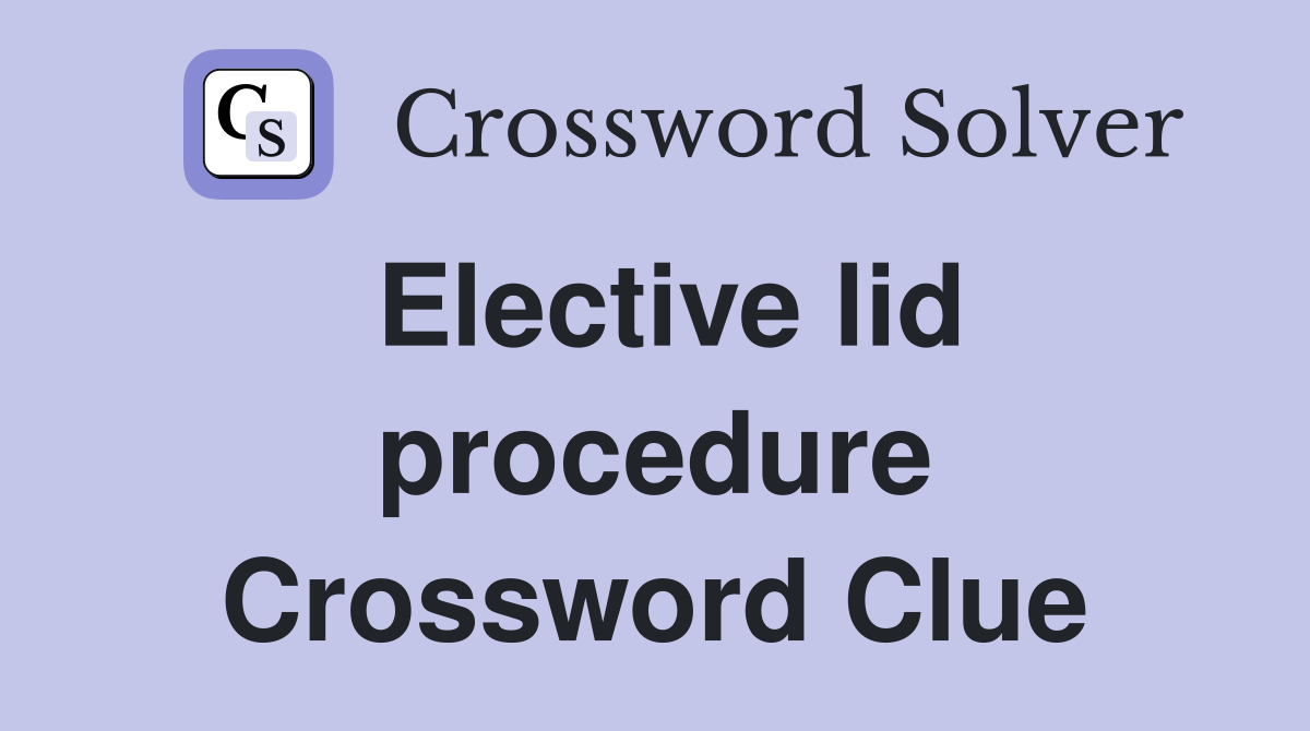 Elective lid procedure Crossword Clue Answers Crossword Solver