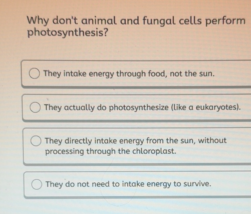 Solved: Why don #39 t animal and fungal cells perform photosynthesis? They