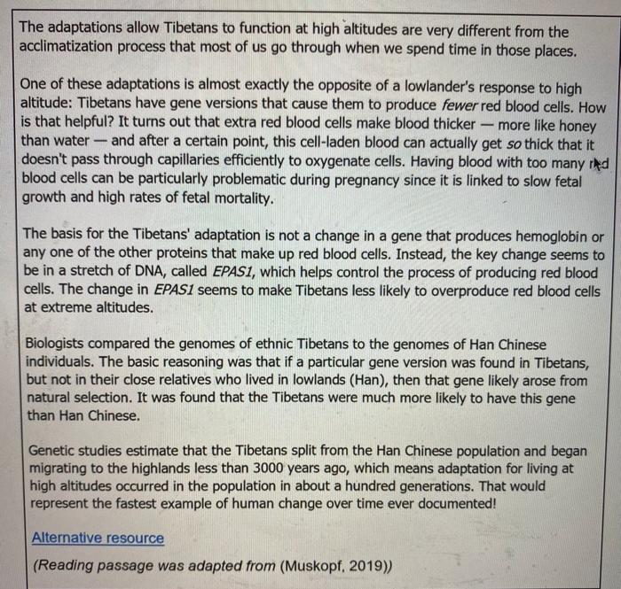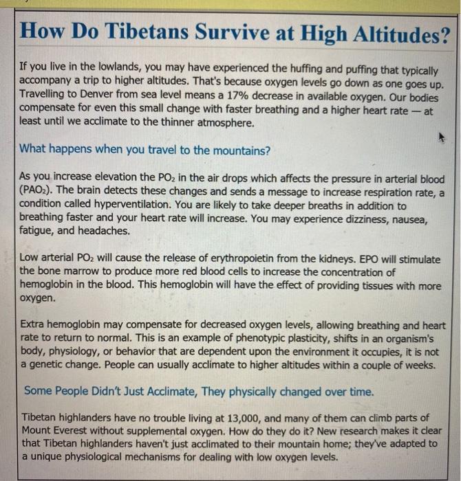 Solved How Do Tibetans Survive at High Altitudes? If you Chegg com