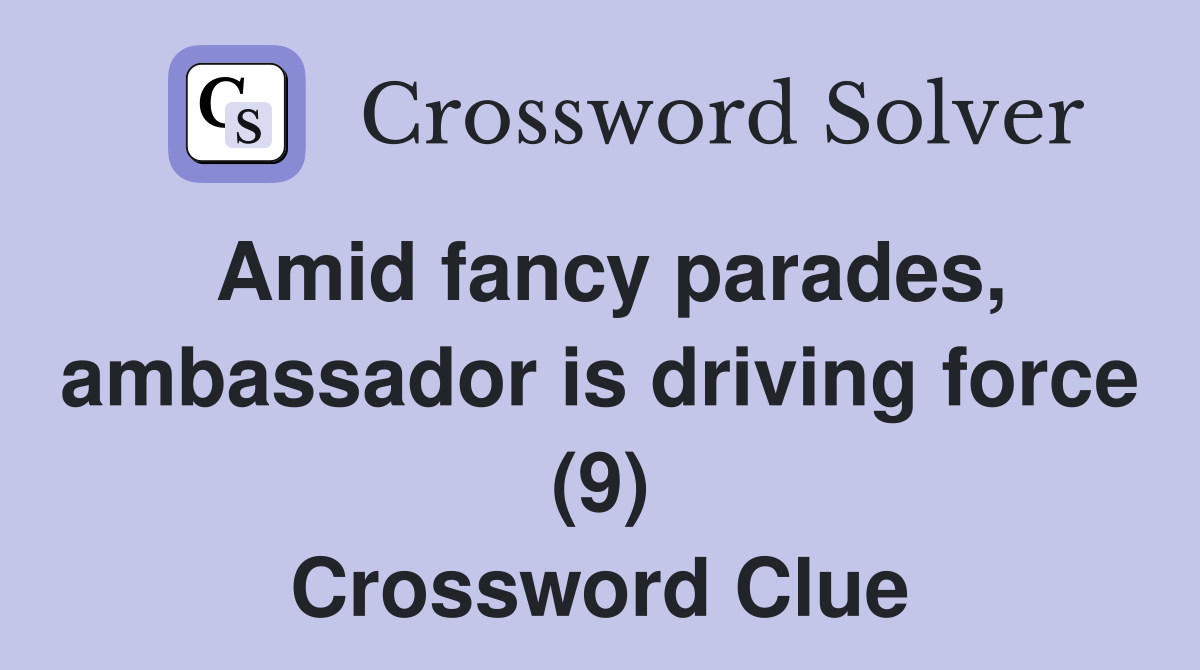 Amid fancy parades ambassador is driving force (9) Crossword Clue