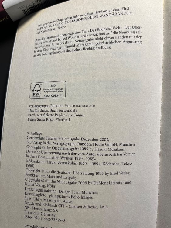 Hard boiled Wonderland Murakami Top Zustand Roman (Gebraucht) in