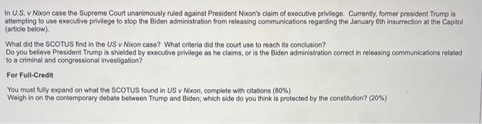 In U S v Nixon case the Supreme Court unanimously Chegg com