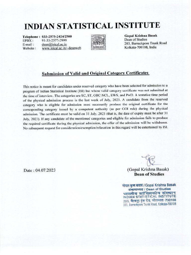 Submission of Valid Category Certificates 2023 PDF