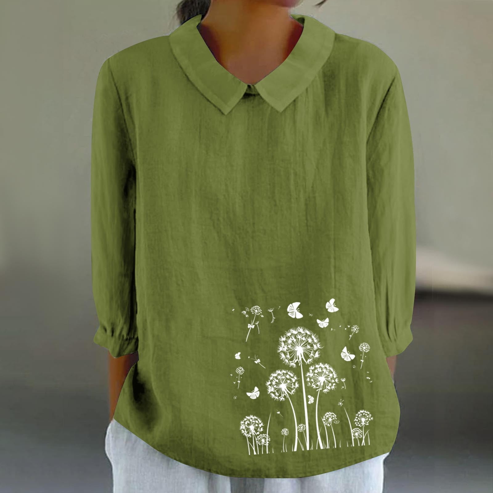 Blmnix Tshirts for Women Bohemian Army Green Pleated formal Tops Long