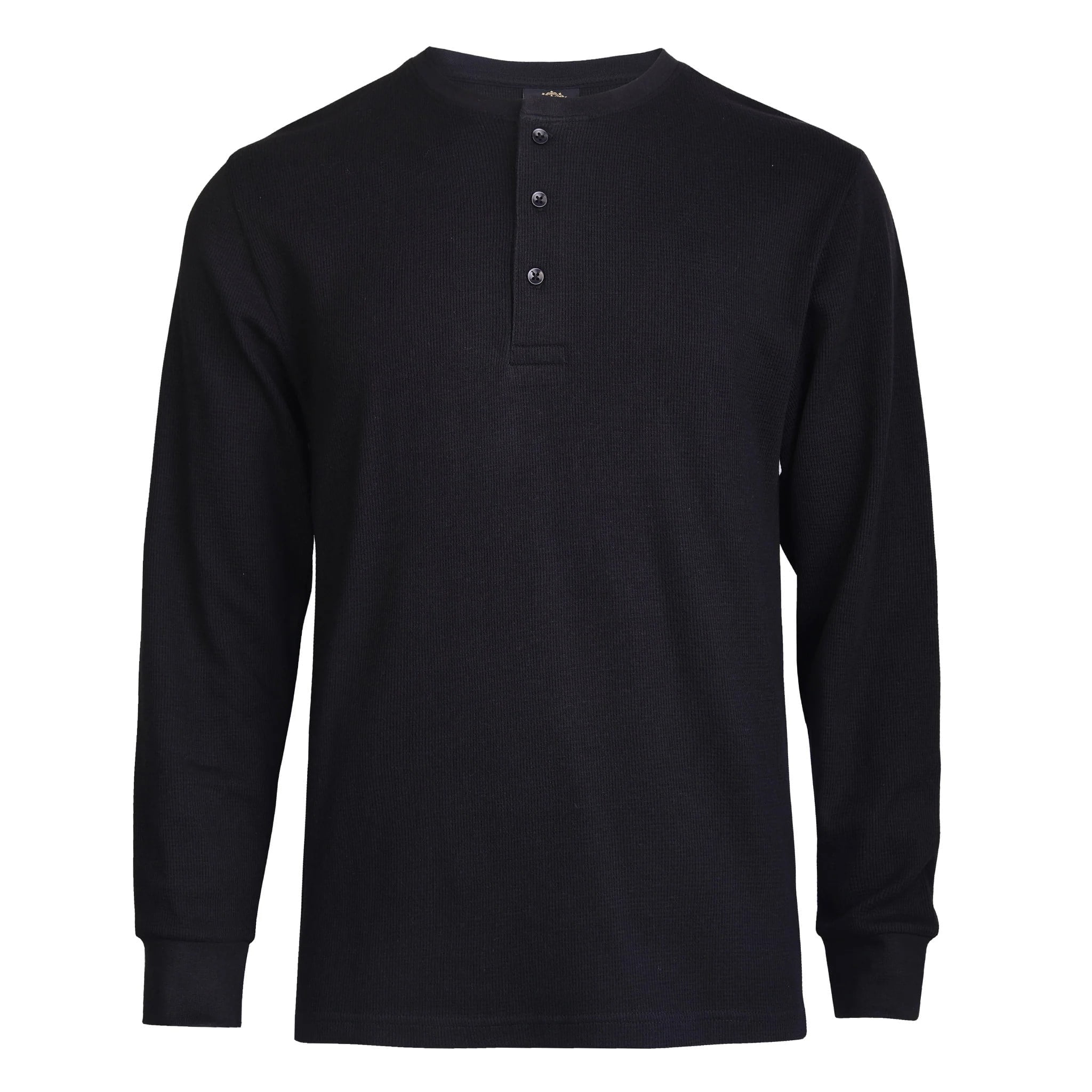 Men #39 s Thermal Cotton Waffle Knit Long Sleeve Henley Shirt Black 3XL 1