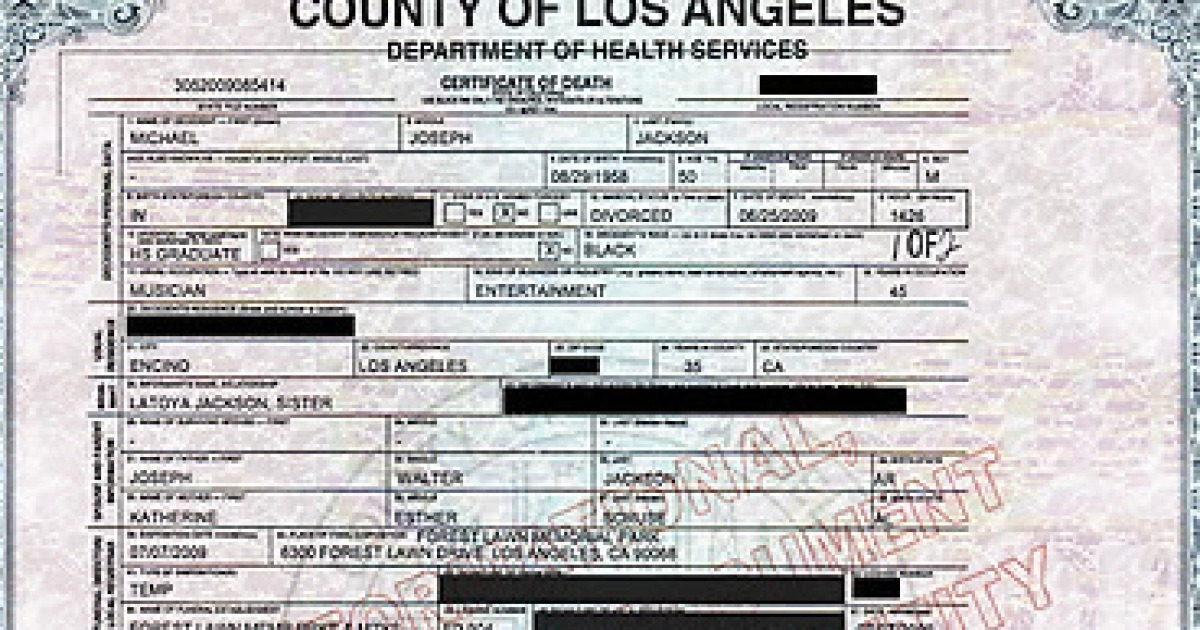USA MICHAEL JACKSON DEATH CERTIFICATE
