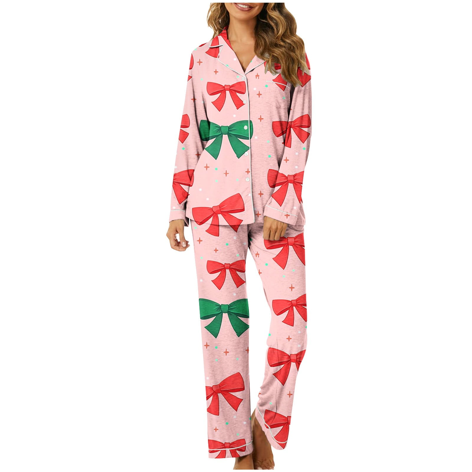 Alkepwun Women 2 Piece Pajama Set Heart Print Long Sleeves Button Down