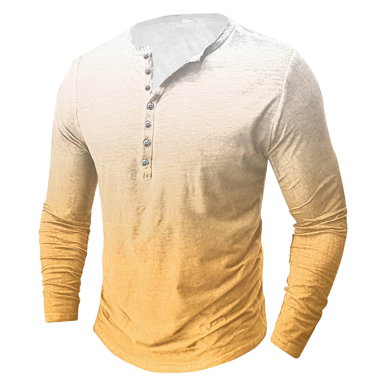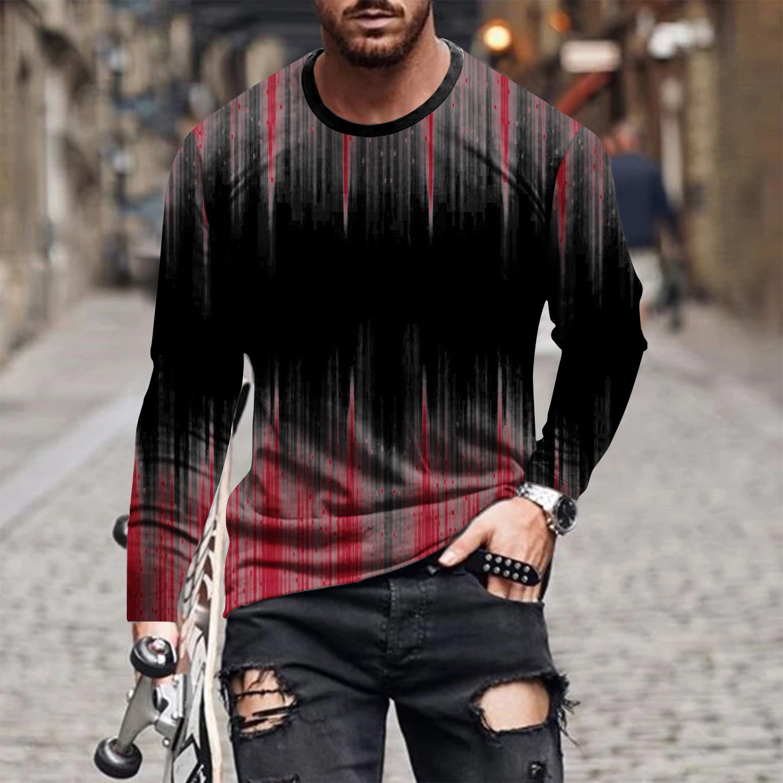 Goodtrade8 Casual Mens Tops Plus Size Gradient Long Sleeve Crew Neck