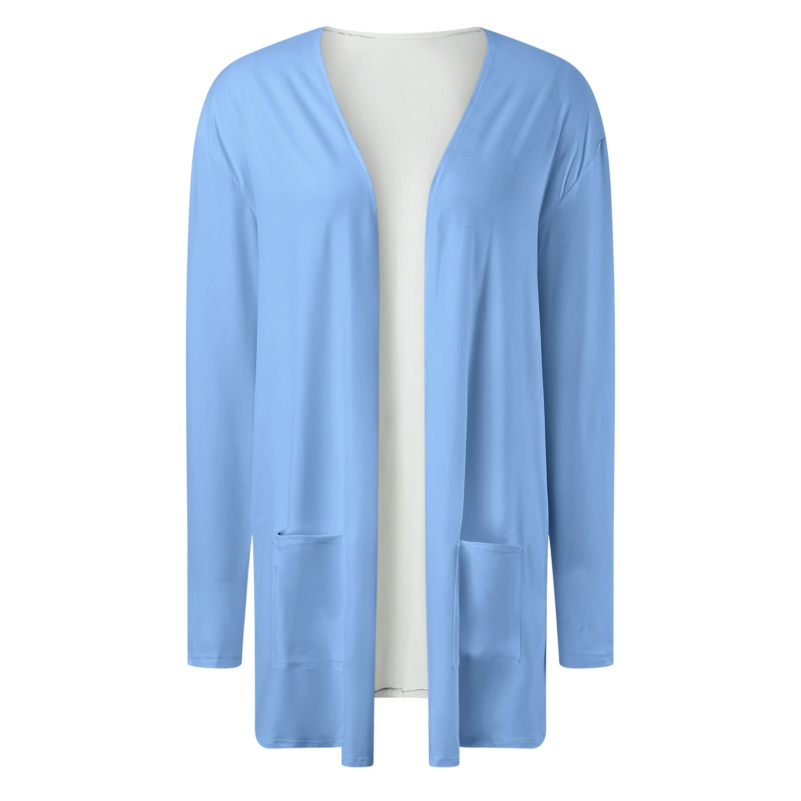Cardigans for Women Trendy Solid Color Pockets Cover Up Mid Long Length