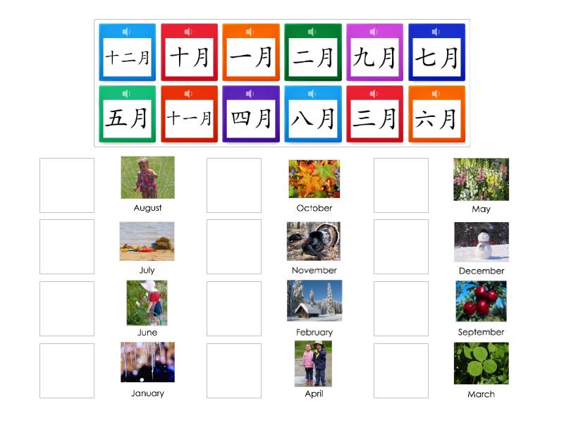 Months of the Year in Chinese Match up