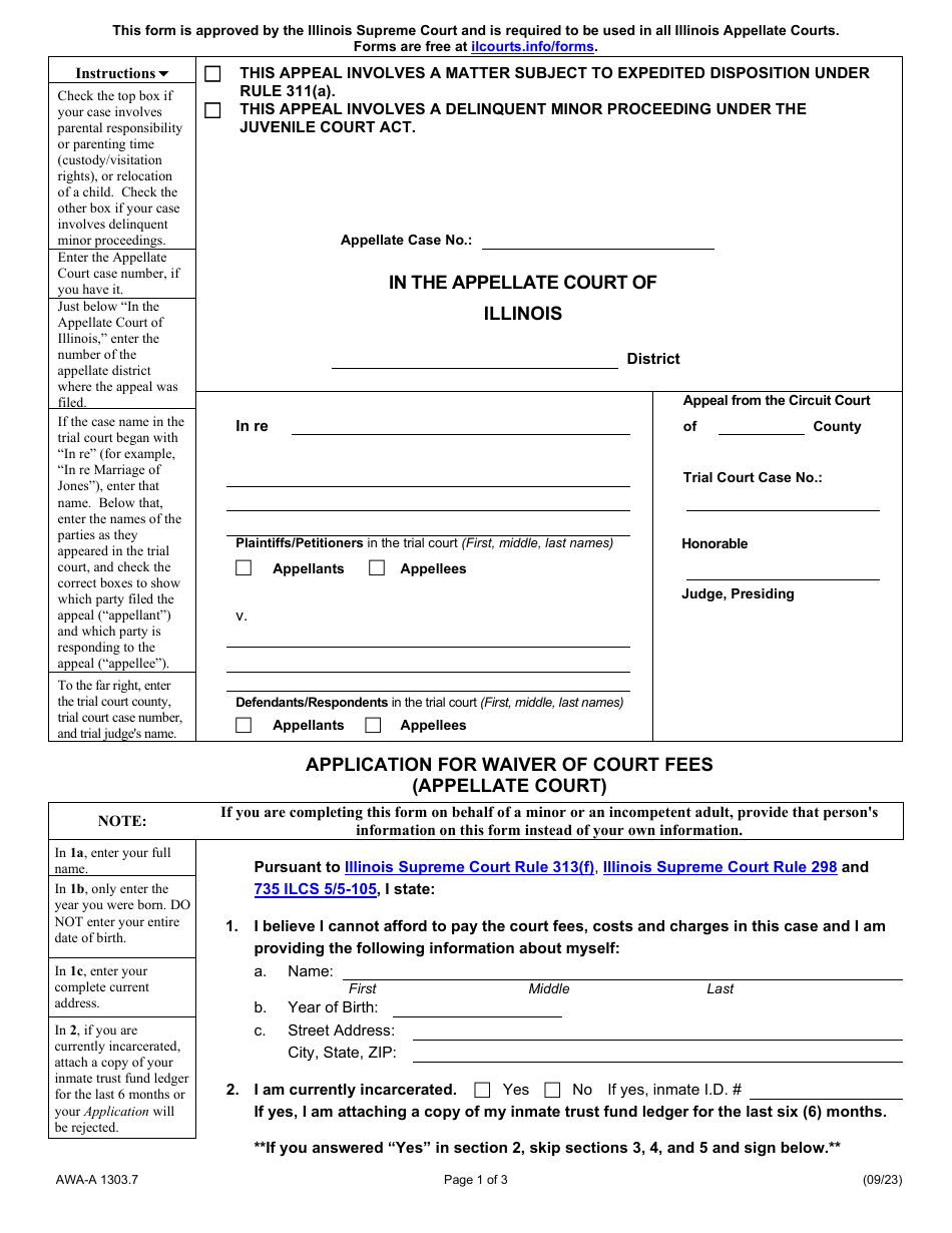 Illinois Application for Waiver of Court Fees Fill Out Sign Online
