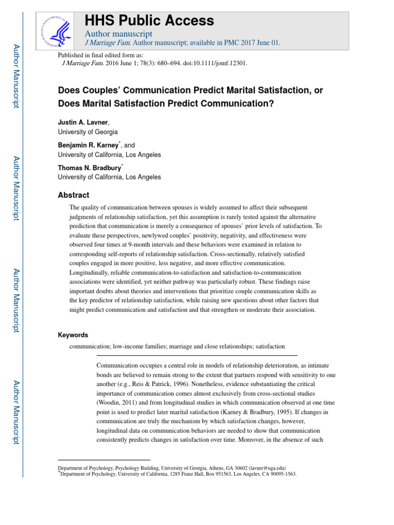Does Couples #39 Communication Predict Marital Satisfaction or Does