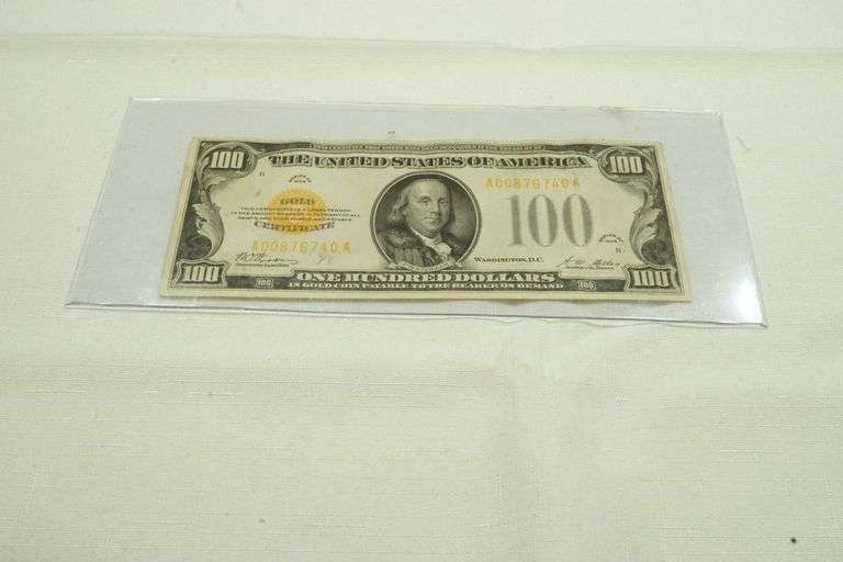 1928 $100 Gold Certificate w/Yellow Seal Yellow Tag Auctions
