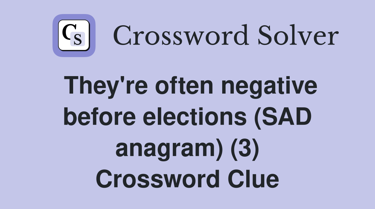 They #39 re often negative before elections (SAD anagram) (3) Crossword