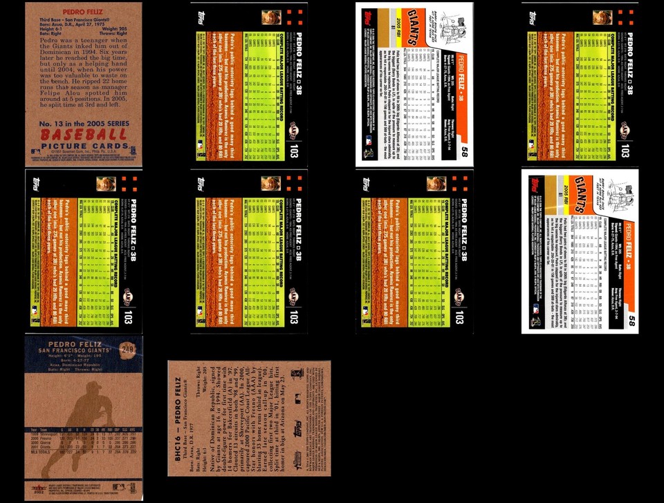 Pedro Feliz San Francisco Giants (10) Card Lot ADD SOME MAGIC TO YOUR