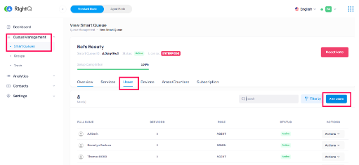 How to add users to smartqueue on RightQ