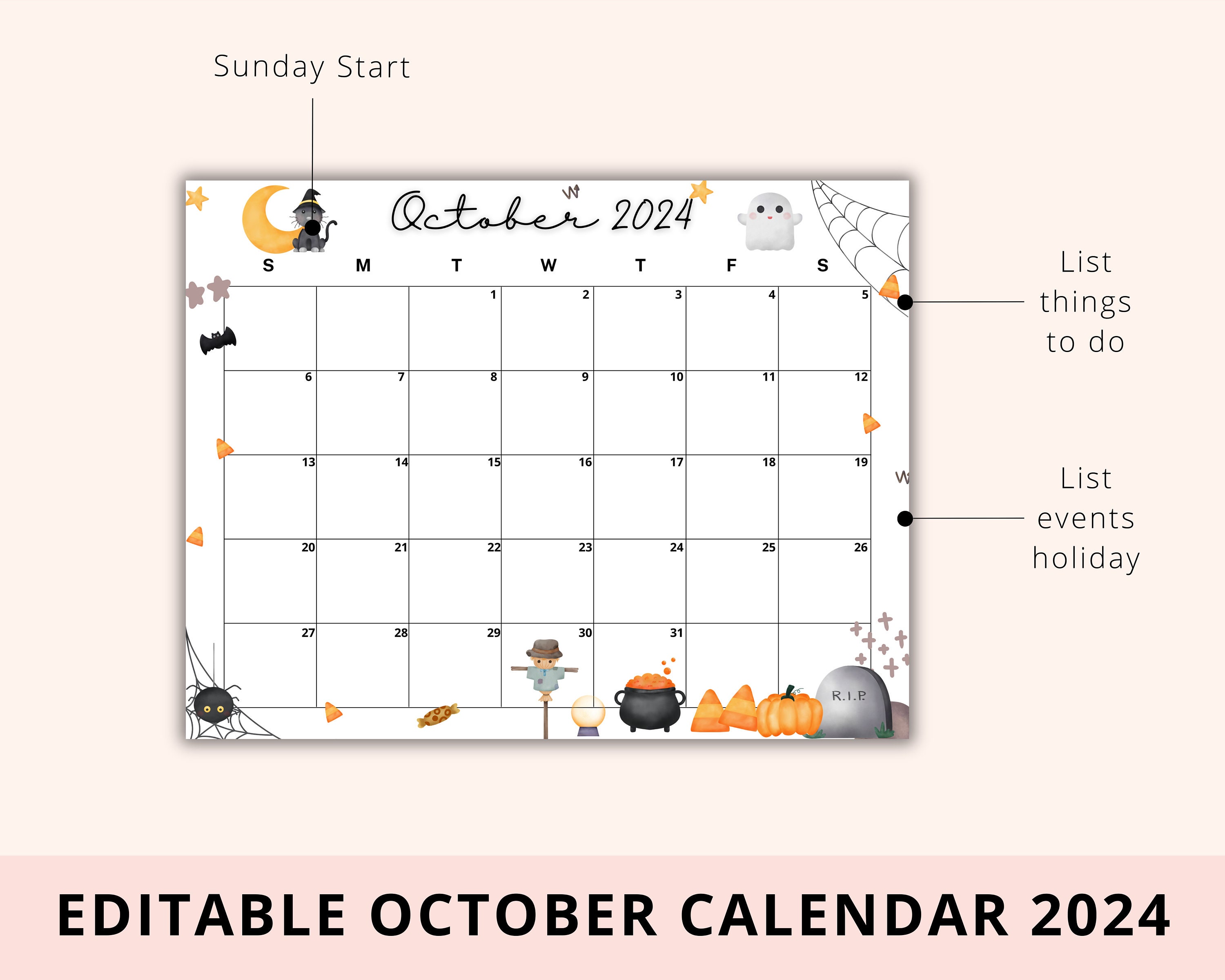 Editable Halloween Calendar 2024 October 2024 Calendar Academic