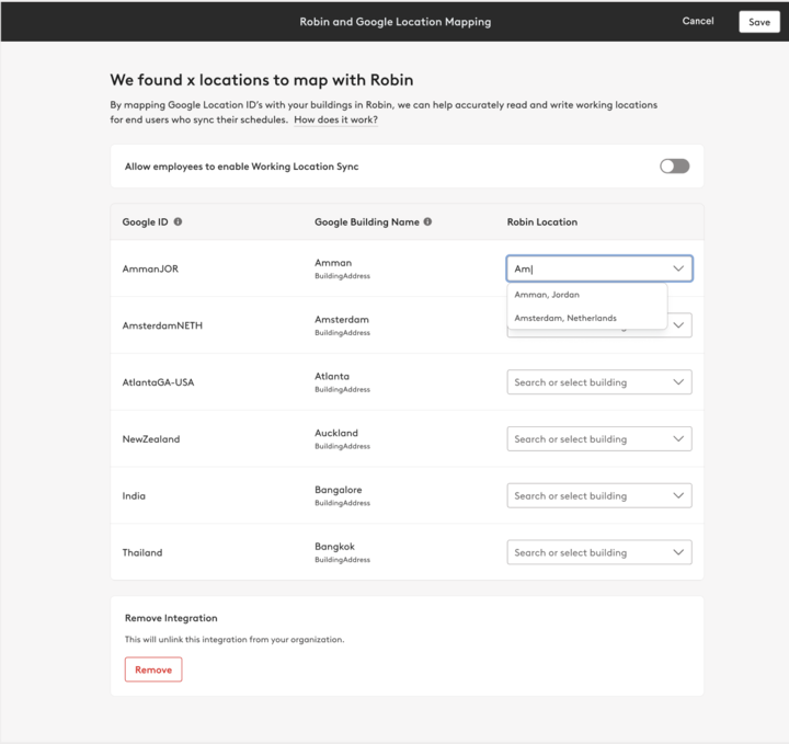 Google: Working location syncing integration Robin Help Center