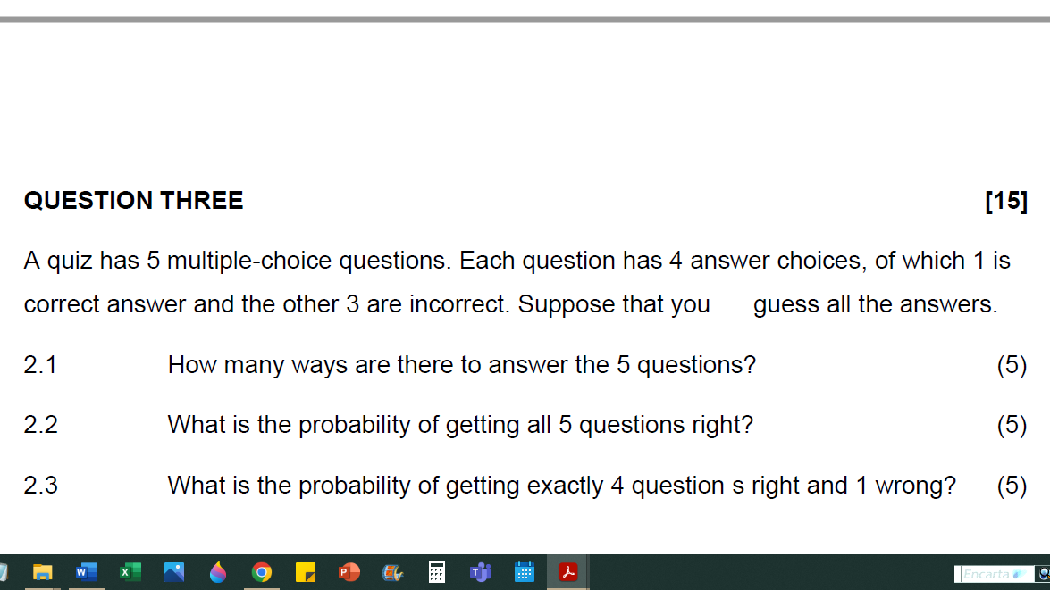 Solved QUESTION THREE 15 A quiz has 5 multiple choice Chegg com