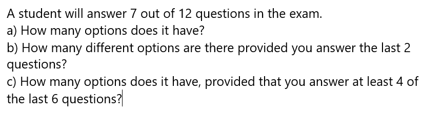 Solved A student will answer 7 out of 12 questions in the Chegg com