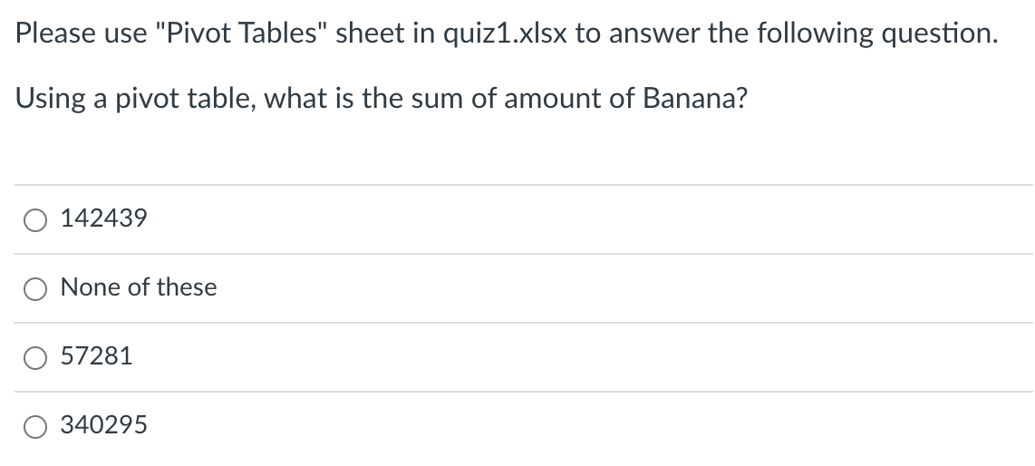 Solved Please use quot Pivot Tables quot sheet in quiz1 xlsx to Chegg com