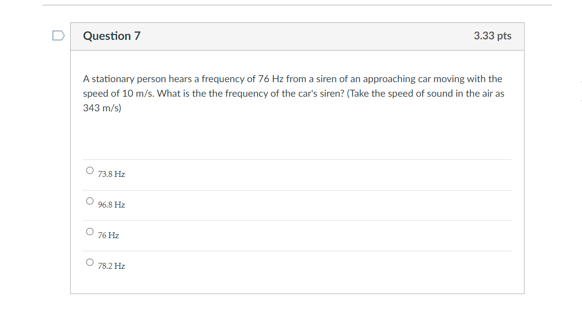 Solved Question 7 3 33 pts A stationary person hears a Chegg com