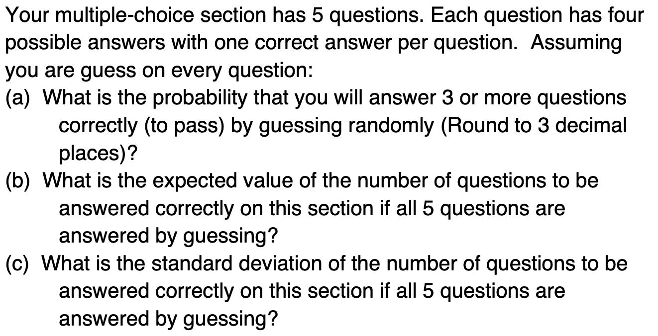 Solved You are taking a multiple choice test that has 5 Chegg com