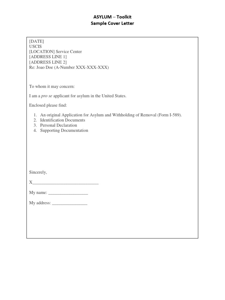 Asylum Application Sample Cover Letter PDF Law